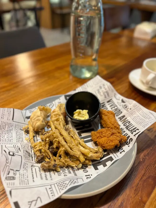 再嚟炸物拼盤,有炸雞翼、炸餃子🥟、炸菇,炸得香脆,好開胃!