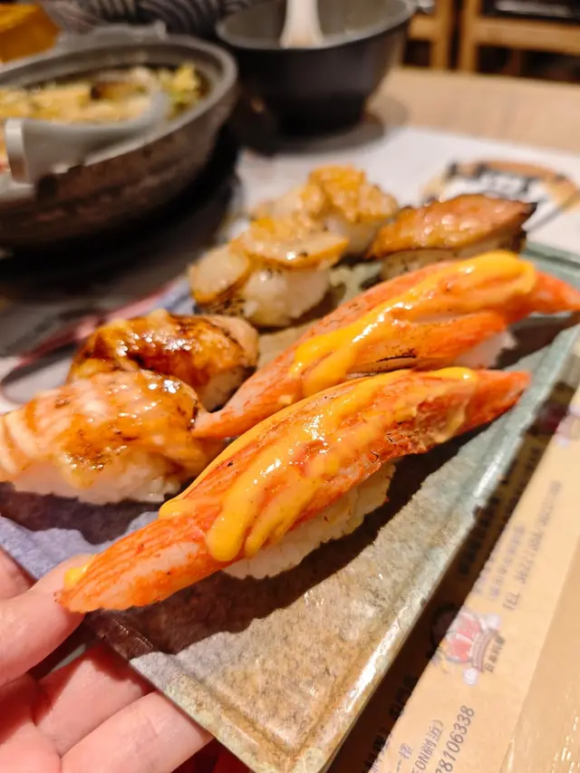 刺身有常見的三文魚、帆立貝、八爪魚、角螺、希靈魚,還有赤蝦、象拔蚌、赤貝等比較少見的選擇~回本之選。另外,小朋友也啱食的手卷、軍艦及壽司也有大量選擇。特別推薦火炙壽司系列,微微焦香的魚油更能提升鮮味!🍣✨