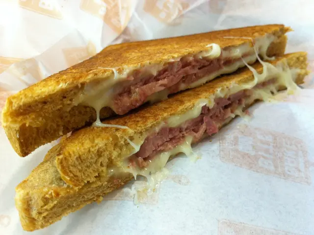 2人吃完少少的半份, 即場encore 1份全份的toastie!! 由麵包的款式, 芝士的種類, 以至餡料, 全都由自己配搭, 麵包和肉類都可以跟自己的喜好, 但至於芝士真的搞不清, 下單時店員簡單的作了介紹: swiss emmental cheese較軟身, cheddar cheese 較濃芝士味, Monterey jack cheese 較淡。