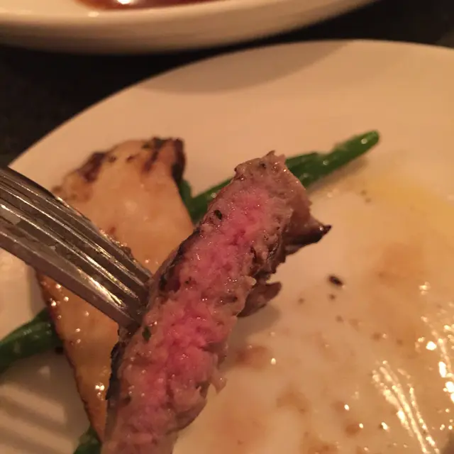 主菜上得挺快。澳洲牛扒先上,侍應生貼心地自動為我們提供小碟以便我和朋友一起分享食物。澳洲牛排肉質細嫩可口,油脂含量適中,不會過多,又不會太少而影響口感,值得一試。