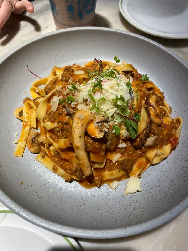 至於主食,我哋叫咗意粉,呢個tagliatelle肉醬意粉真係好有驚喜,醬料超香濃,意粉唔會過腍,仲加入咗新鮮蘑菇同芝士,打卡都好睇!