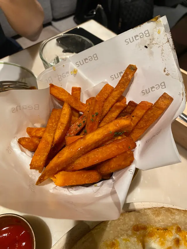 首先要講吓個番薯條,炸得啱啱好,外脆內軟,每條都帶少少香草味,食到停唔到口!配埋側邊嘅茄汁,簡直一流。