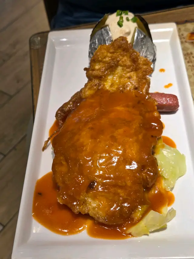 龍脷柳是一早預製好的,所以不是太熱,薯菜是半個薯仔,加上沙律醬,感覺不錯。雞肉腸也是普通的腸,有少少伴菜,這個價錢不過不失。