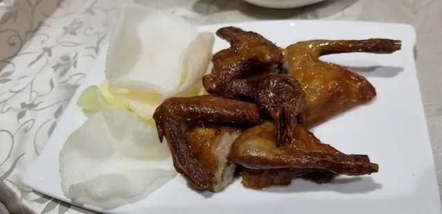 「紅燒乳鴿」: 大愛童年回憶甚濃的七彩大蝦片拌碟實在非常有驚喜,單是果份回憶都已經攞晒分數,因為七彩大蝦片已經唔係容易可以食到,當然蝦片既咸脆好到位,真心想食多幾塊,不過始終有限吧,「紅燒乳鴿」炸得很帶脆口,皮脆肉嫩而且多汁,送汽水啤酒一流呀。