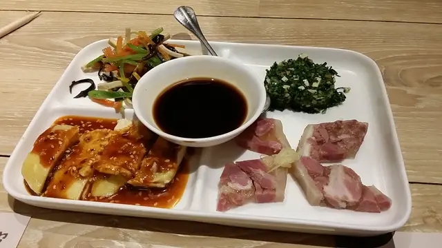 白切雞淋上,豆板辣醬, 辣香是慢慢滲出來再在口中持續短時間, 豆板辣醬味道濃又重, 宜配白飯。