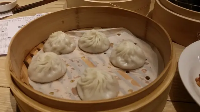 小籠包一籠有5件 , 皮水氣略重, 重量增加令到皮易破, 夾時要小心奕奕。內裹的湯汁可以豐富些, 豬肉餡的肥瘦比例是3:7。
