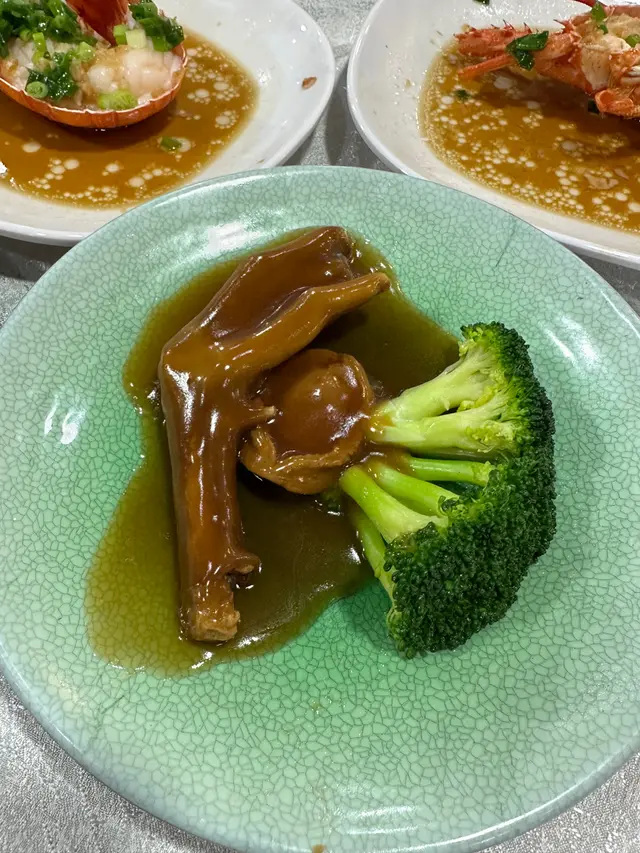自助餐方面,有各式的中菜、點心、甜品,一開始我們吃了幾款燒味,叉燒及燒肉都好有水準~每人有半隻新鮮澳洲龍蝦及鮑灸鴨掌,酒樓廚房應該好擅長做中菜及新鮮,吃得出有質素的味道~