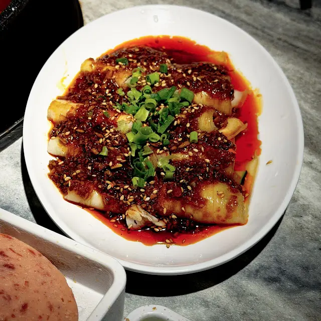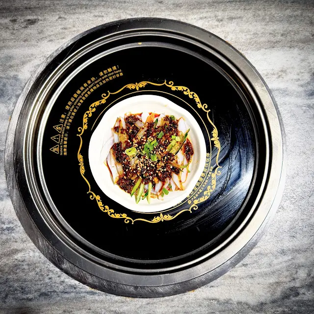 川北涼粉原價$28跟餐加$18!潔白的條狀涼粉質感較為細軟,配搭麻辣鮮味及醒胃醋香味道頗討人歡喜。