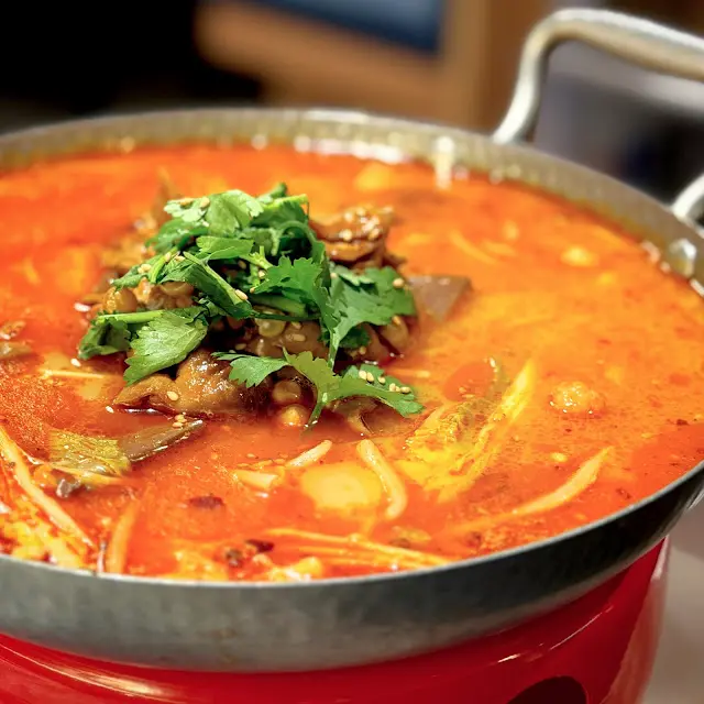 鴨血口感挺滑溜豬腸帶有靈魂的味道,內裏還有不金菇、萵荀等蔬菜好豐富,蔥花的香花椒的麻及辣椒的辣充分融合在一起,如果豬腸能夠大件少少口感更加豐滿好吃。