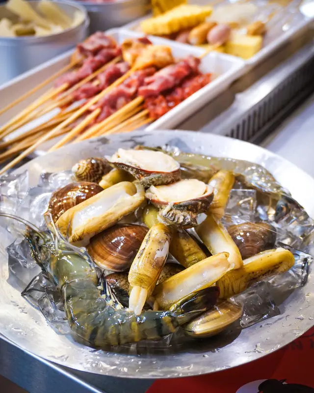 ❖ 佢有分3個價位,我哋揀咗中間價位🙆🏻♀️除咗基本嘅自助區配料任食、汽水任飲外,呢個價錢仲會包一碟牛頸脊、牛小排或牛西冷同海鮮拼盤😆而海鮮更有蟶子、元貝、貴妃蚌、花甲等等~
