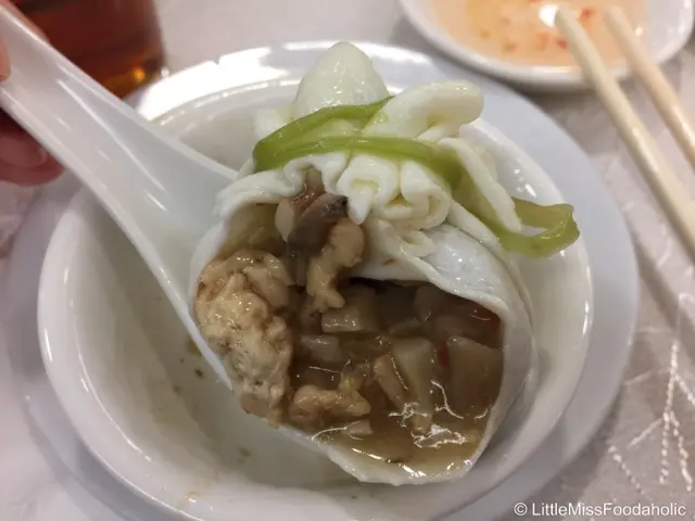 內𥚃餡料滿滿,雞肉、冬菇、芹菜⋯⋯ 非常豐富。芡汁濃而清新,與餡料配合得宜。