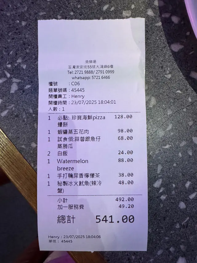 餐廳嘅川菜、火鍋同串燒水準有待下次再試。但單就今次體驗,蒜蓉銀魚仔蒸勝瓜絕對係必食之選,清新鮮味,盡顯功架。相反,珍寶海鮮Pizza蠔餅就係一個大地雷,未熟透嘅中心同過量嘅粉漿令人失望,可以慳返。如果大家去幫襯,記住點勝瓜,避開蠔餅!
