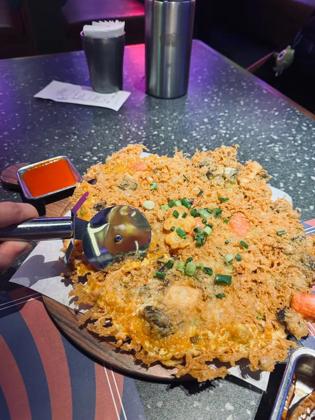 至於另一款名字吸引嘅「珍寶海鮮Pizza蠔餅」,就真係大跌眼鏡。上枱賣相確係幾「珍寶」,份量十足,面頭亦見到唔少海鮮料如蠔仔、蝦仁等。可惜一入口就出事:最大問題係個蠔餅嘅「心」完全未熟透!用筷子夾開,中間部分嘅粉漿呈半透明黏糊狀,明顯未炸透,口感粉腍濕漉,非常滯口。而且粉漿比例嚴重失衡,「太多粉」!厚厚嘅粉漿完全蓋過咗蠔仔同其他海鮮嘅鮮味,食落只有油膩感同厚重嘅粉感,外層亦唔夠香脆。