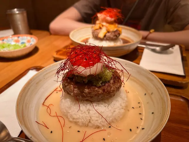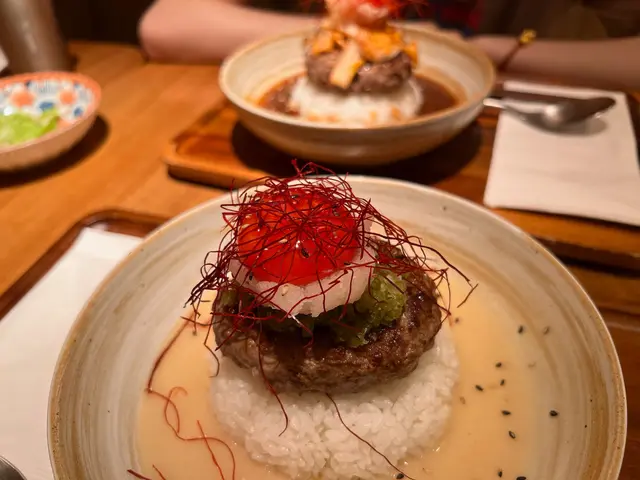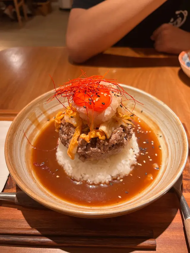 漢堡扒飯可以揀唔同嘅醬汁,我就聽咗店員嘅建議揀咗最熱門嘅漢堡扒汁,醬汁酸酸甜甜可以好好咁樣綜合左肉嘅油膩感。而和牛嘅肉質又真係唔同啲,食落完全冇跟之餘,亦有好重嘅牛肉味!再加上蘭王雞蛋同日式泡菜,口感十分之豐富!