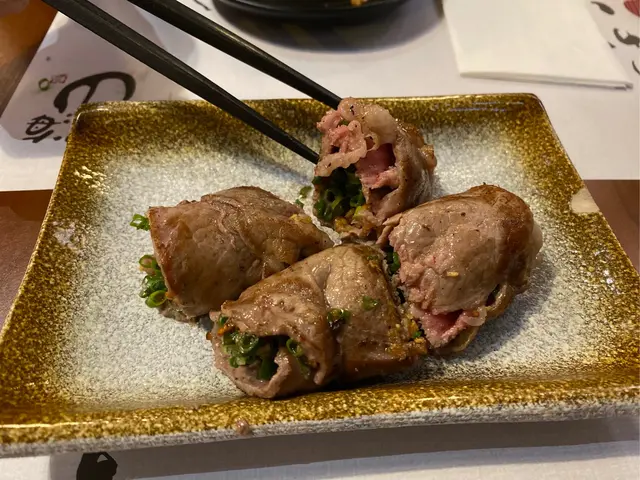 牛肉鮮嫩,保留到肉汁,牛肉片捲住蔥粒,增加口感,簡單海鹽調味已十分足夠!