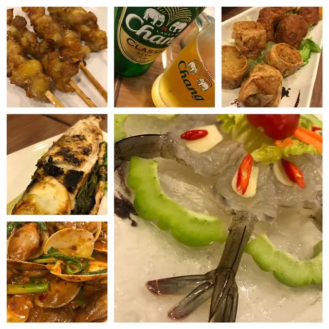 因為有6個人, 所以都叫左好多野食, 生蝦刺身, 柚子蝦沙律, 泰式拼盤,冬陰公, 炒花甲, 燒烏頭, 鐵板蠔仔奄列, 生菜包, 泰式炒飯, 炒通菜(希望無數漏)