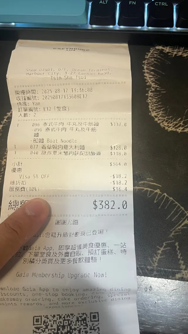 年度最差,沒有之一 eebrianleung等級22025-08-20212 views Follow 趕時間,求其揀咗一間餐廳入去食。入去前同我講炒爐壞咗,冇炒嘢食,冇問題,都係食個快飯。牛肉船麵:叫咗個船麵,5分鐘唔使上到嚟,個面仲係有骨嘅,仲未煮熟,即刻叫佢哋換咗佢。香草蜆肉意粉:味道正常,不過份量好少粟米蟹肉餅:上碟同餐牌係兩隻色,燶到不得了,完全冇味,唔點醬唔知自己食緊乜。服務:醬料餐具,全部要叫先有,因為換過個船麵,食食吓兩個人食有四對筷子喺枱面,冇人識過嚟收,完全係發緊夢。總結:兩個人差唔多四舊水埋單,好似冇食過嘢咁,一肚氣,永久blacklist份量極少$128完全冇味$118The above review is the personal opinion of a user which does not represent OpenRice's point of view.LikeShare年度最差,沒有之一 Greyhound Café (海運大廈) https://s.openrice.com/QrbT0bHjU00Report Post Ratings1Taste3Decor1Service3Hygiene1ValueDate of Visit2025-08-18Dining Method堂食Spending Per Head$200 (午餐)