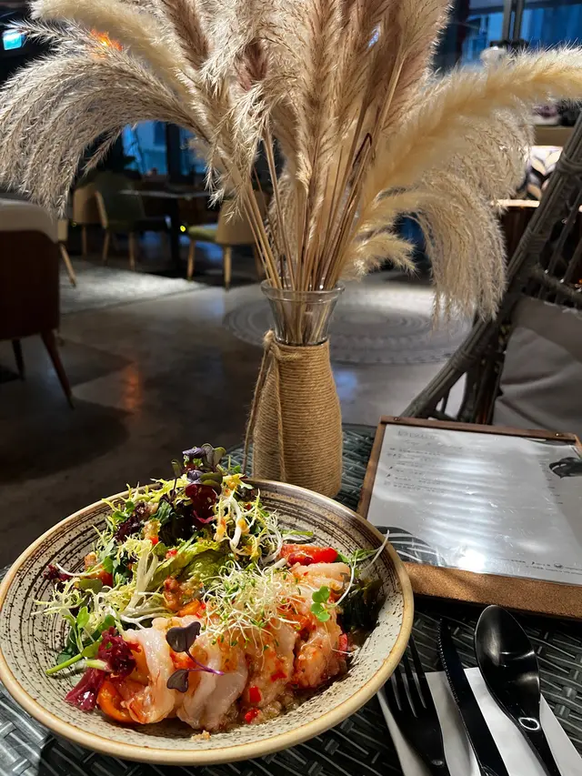 紅蝦已去咗壳食得放心,肉身肥嫩軟腍,混合沙律菜、泰式辣汁及爽脆青瓜絲一齊食,辣得過癮