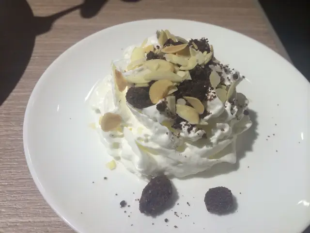 友人嫌cream不夠多 叫佢額外再加 以為只係一"pet" cream咁上 點知還會加埋啲杏人片同脆脆 幾意外 不過價錢都相應有這種服務的:)haha