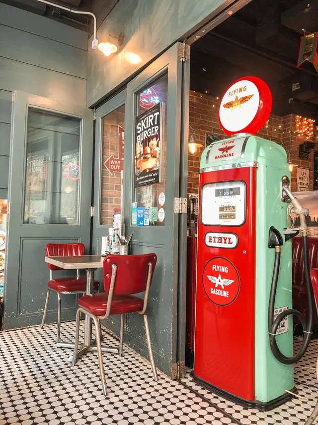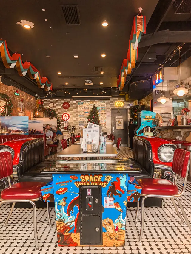 分量真係超級勁人 兩個人share一份就差唔多 好鍾意小店嘅懷舊設計 有個仿汽車卡位 仲有幾部街機 好有舊美國餐廳風格 另外仲有啲半露天位置幾舒服