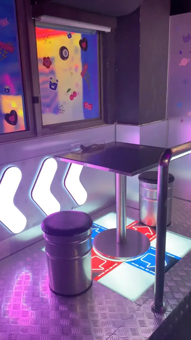 尖沙咀「啤啤Bear韓國包車」以韓式機舖為主題,是人氣餐廳「hoo韓國包車」的分店,設 Y2K 霓虹燈、Disco波波燈、籃球機及跳舞機多個打卡機,有得食更有得打卡!