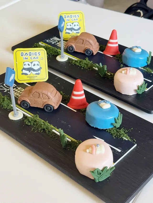 再配上朱古力道路安全牌、交通錐及糖皮「熊貓車貼」