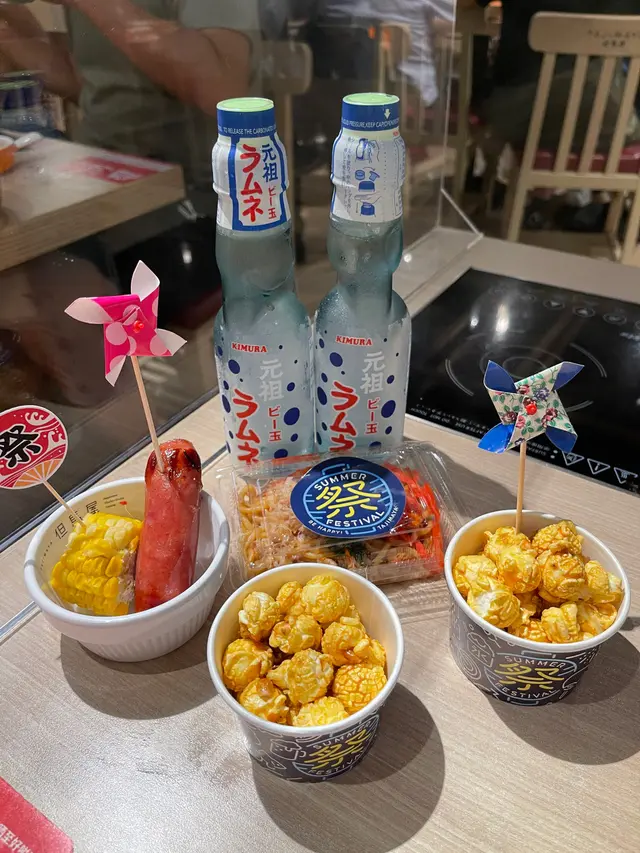期間限定自助吧有多款夏祭特式小食,有粟米、爆谷及香腸等!而且配有夏祭小杯及裝飾,㐬滿☀️夏日祭典風情!
