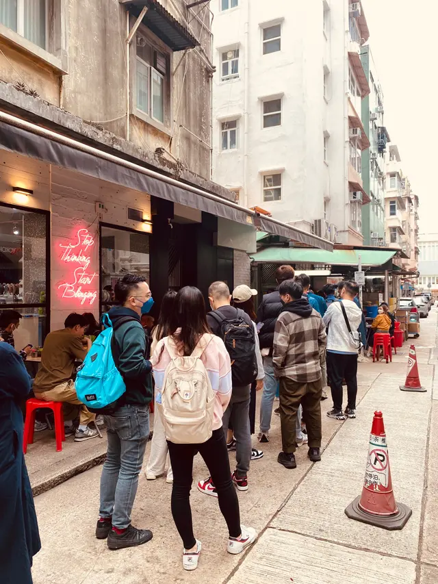 就在大坑火龍文化博物館的隔壁巷子口,還沒看到店家招牌,長長的人龍就已經出現了。