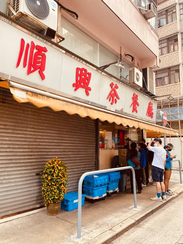 今天涼爽的天氣,我們選擇了戶外座位排隊。