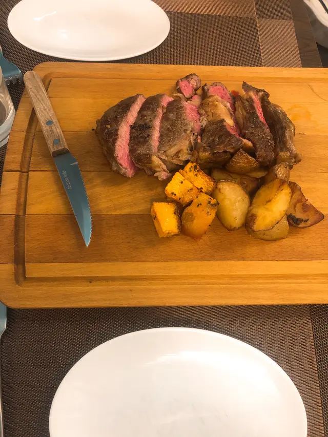 我地叫咗medium-rare,配合蕃薯同薯仔,牛有牛筋,肥瘦均勻,唔錯,又夠入味
