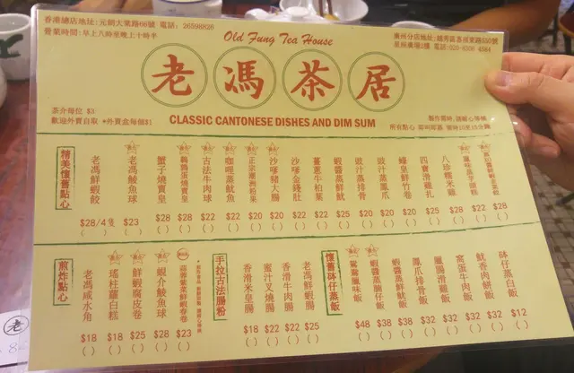元朗大棠路就有一間走懷舊路線的茶樓 - 老馮茶居, 初初開張時還以是茶餐廳, 原來是以集體回憶作主題的茶居。此"老馮"不同俗語的"老奉", 是姓馮的兩父子店主是也, 而老馮更是有40多年經驗的點心師傅。