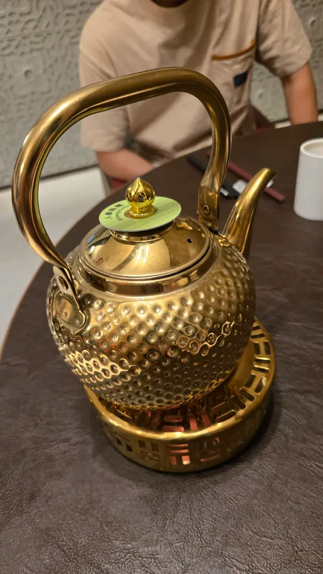 餐廳空間設計以懷舊名門為概念,復古牆磚、中式木紋、低調金飾同暗紅絲絨椅交織出一種屬於上世紀嘅優雅格調。坐低嗰刻,我已經覺得自己好似穿越咗去老香港,啱晒我呢種心底鍾情復古氣息嘅人。加埋桌上那隻金銅雕花茶壺,香氣撲鼻嘅人參烏龍茶,未食已經有種「被好好對待」嘅儀式感。