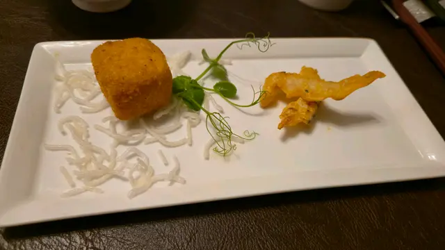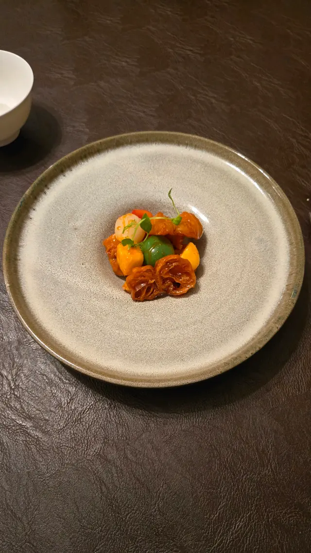 第一道菜係「金磚豆腐.金沙白飯魚」,一上枱簡潔但見心思。金磚豆腐外層炸得酥脆金黃,咬落去內裡滑得好似豆奶啫喱,細膩又暖心。金沙白飯魚就炸得極薄,帶微微咸蛋黃香氣,鹹香適中唔會搶味,配埋炸米粉做底,脆口得嚟又唔會覺得膩,真係好醒胃。