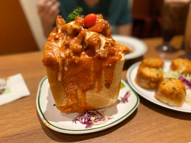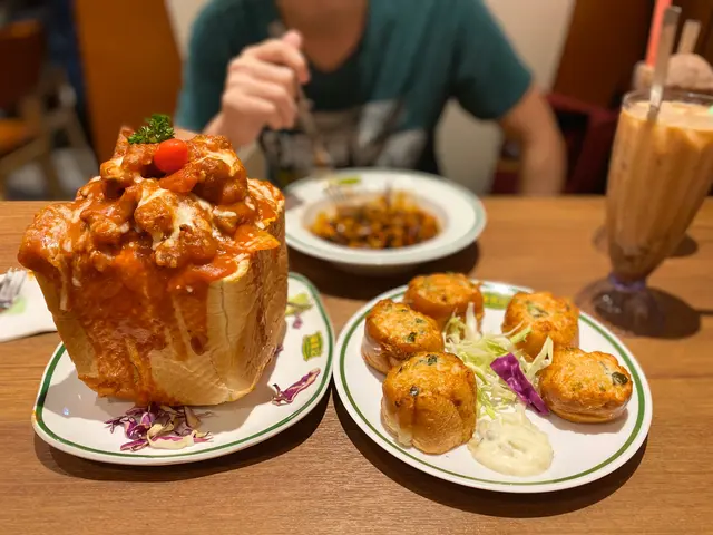 磚頭🧱焗豬扒飯:(88元)🐷🍚 一上菜已經嘩一聲,蕃茄汁配芝士差不多溢出,配上好多塊厚切豬排🐷啖啖肉,而且飯量好多,食到好飽🍚吾夠飽可以食埋個磚頭🧱因為係用上大多士做容器🥪食得出仲有芝士味。