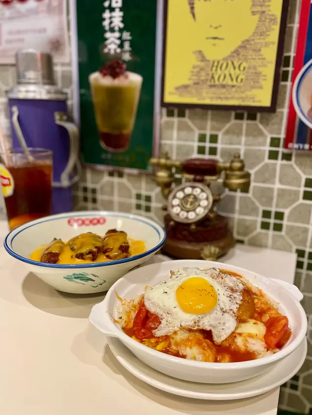 💬套餐飲品, 熱飲+💰6, 凍飲+💰9, 特飲+💰14, 叫咗凍檸茶都非常之大杯好抵飲, 內裡環境充滿懷舊感, 價錢對得住食物質素, 如果想喺旺角食個快飯不妨可以嚟呢間試吓🤣, 我坐嘅卡位仲有個懷舊電話同埋好古老嘅水壺, 嗰個位嘅擺設同poster仲要唔同添😌