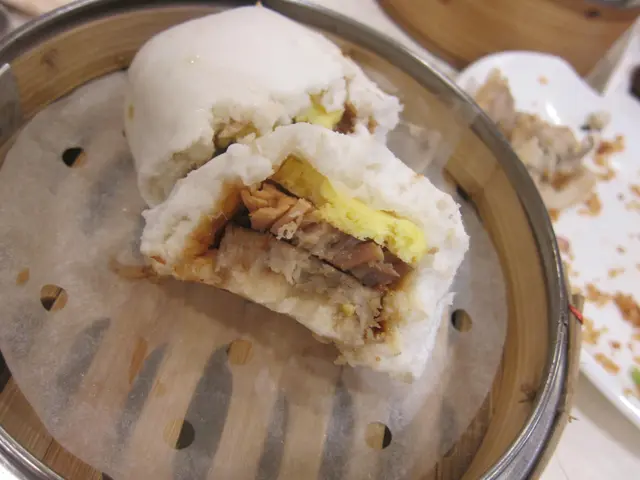 皮沒厚得過份, 鬆彈柔軟, 帶自然的發酵香味, 緊貼著粉糯的芋塊、腩肉還多加蛋塊, 厚厚的, 咬起來更豐富, 確與別不同。 只可惜肉質偏瘦削, 脂肪層幾乎沒了影, 只能說是健康的版本, 但就失了樂趣吧!