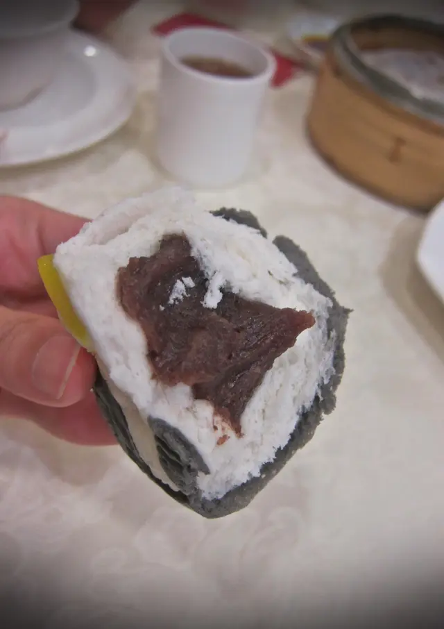 灰白的身子加上手腳和眼睛後, 動感盡現, 有點捨不得咬下去, 嗚…撕開鬆軟的外皮, 已見豐滿的豆沙饀, 固體狀可不是沒魅力啊! 包身彈性不俗, 一絲絲的組織, 不會濕得黏成一糰, 嚐出樸實的麵粉香, 配上綿滑的豆沙, 甜度適中, 充斥著豆香