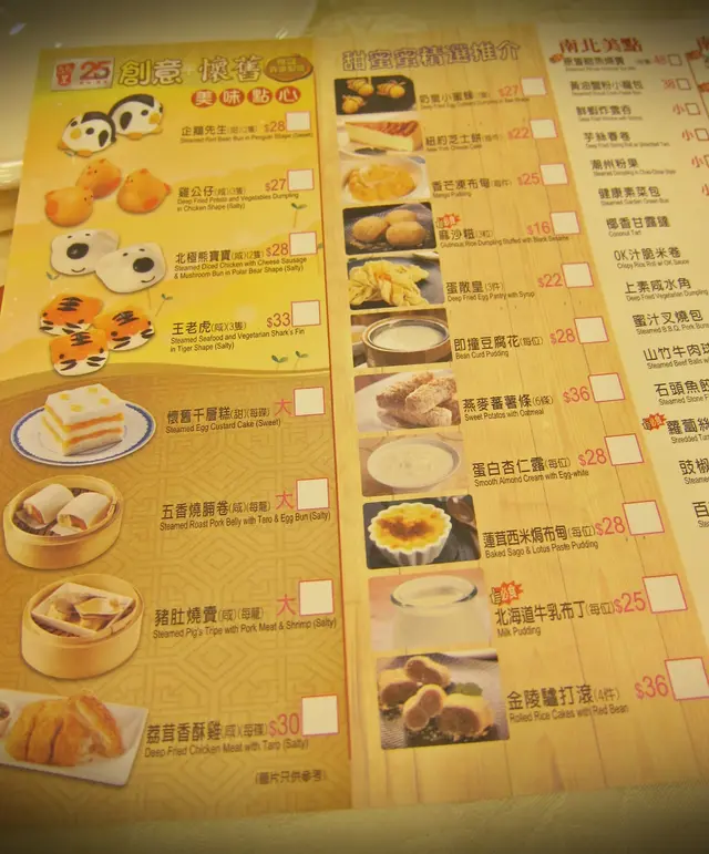 點菜的任務又再由我負責, 爸媽則坐定定等吃。 既有預謀而來, 雙眼向著點心紙一瞄, 將一眾特別造型的全搜出來, 蒸包、蒸餃、炸物、甜品等, 款式只五六種, 未夠花多眼亂呢!