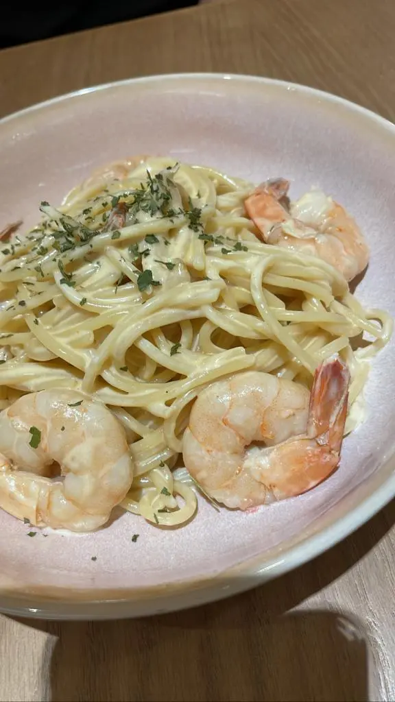 蒜片蝦意粉 ($138) -蝦大隻而而且份量多,肉質爽彈有咬口,意粉被濃厚白汁包圍住,creamy的,一個人食會好飽。