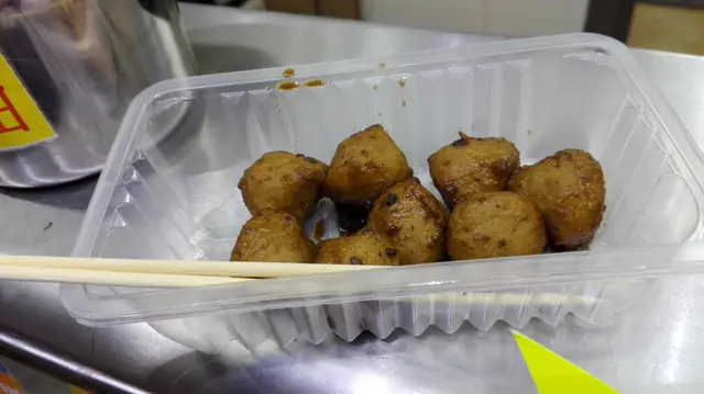 好, 竟然有陳皮魚蛋, 就食住幾粒先, 因為有人堅持要拉我走, 佢話: [要食蛋蛋/睇巴士]喎~