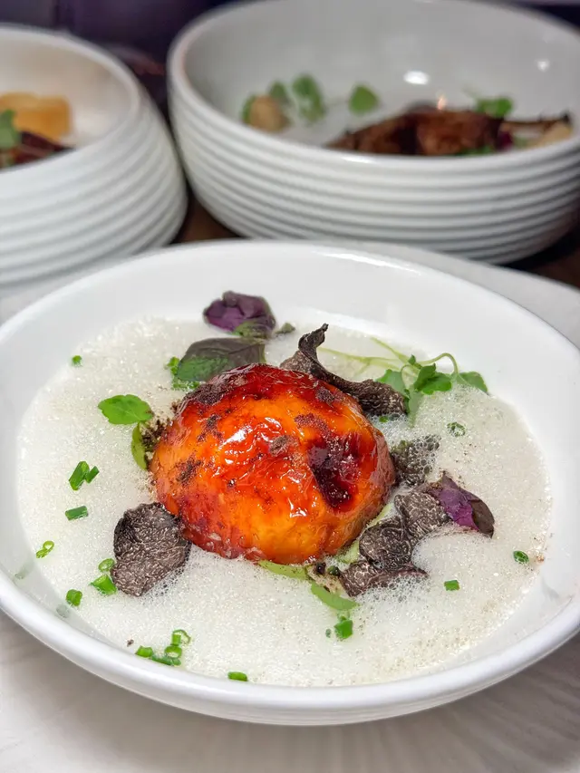 三黃雞外皮燒得焦脆,入面似雞肉丸子啖啖肉,鴨腿肉質嫩滑,點黑醋醬味道剛好,最後食鵝肝配埋薄脆,真正既入口即融