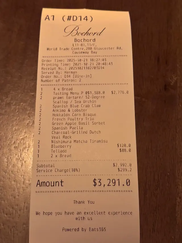 Tasting menu|$1388