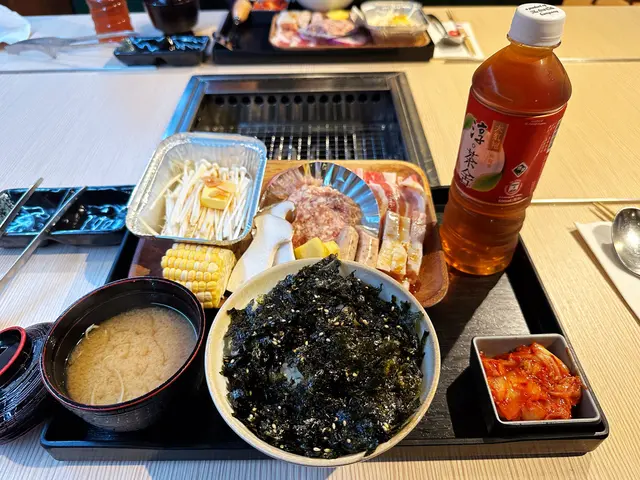 一人放題還有紫菜飯 / 溫子玉子飯、泡菜和味噌湯,所以再追加咗一次牛五花和豚五花後,已經開始飽。