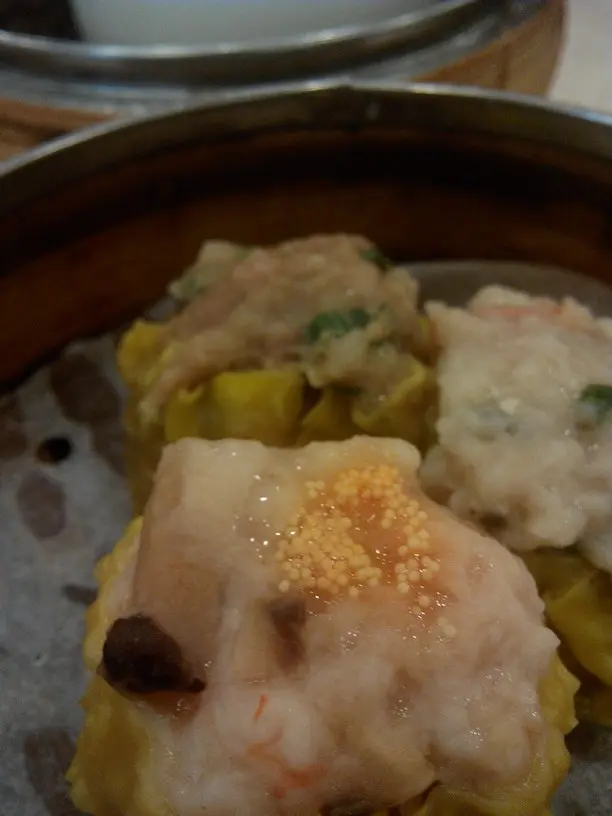 三星燒賣與我孩童年代的分別太大了,令我有點兒驚訝!所見的“三星”是魚肉丶豬肉及牛肉燒賣各一粒,上面無放置其他食材了,不能帶出喜悅。還記得小時候的我也愛吃“三星燒賣”,每粒豬肉燒賣上放置了不同食材,不同酒家就有各自特式,也視乎價錢而定。基本有東菇及火腿,名貴的有鮑魚仔或魚肚,平民化有叉燒或蟹柳條,過年便添上發菜和豬脷。三粒星星都發出智慧的光。