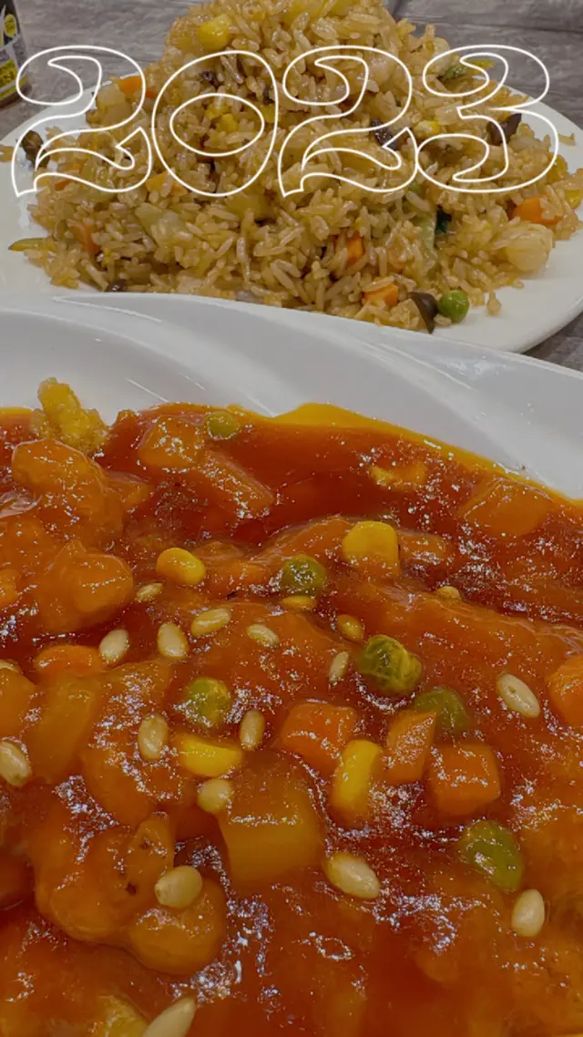 2大2小叫咗半隻北京填鴨,農家炒飯,龍脷柳松子魚,涼拌千層豬耳。