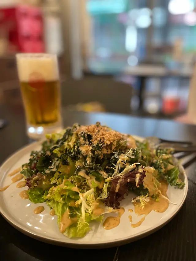 沙律菜新鮮,份量好足夠🥗驚喜地食到有海帶,配上木魚絲和胡麻醬,好夾