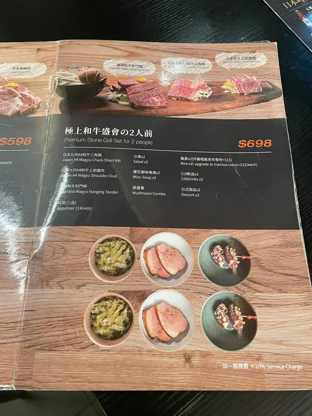 一共有3款😋A4和牛三角胸,最好食😋入口即溶,好腍身又多肉汁🔥而和牛上前腿肉油脂分佈均勻,和牛色澤鮮明,口感好嫩滑 😍放係石板上,燒大概30秒就食得啦🤩另外和澳洲和牛封門柳,肉質偏厚實,重牛味🙌🏻 仲可以按每個人口味而配搭唔同調味料,有黑椒、自家鹽和燒肉汁,好滋味