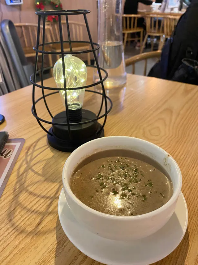 濃郁的蘑菇味,湯裡仲有啲菇菌類,飲湯時都會有啲咬口👍🏻估計都有忌廉煮,碗湯都幾creamy
