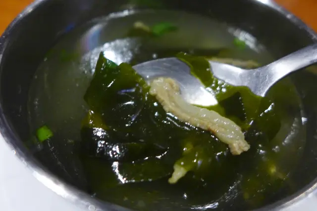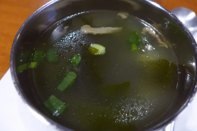 韓式清湯以海帶為主,也有少量肉絲,入口只有淡淡鹹味。