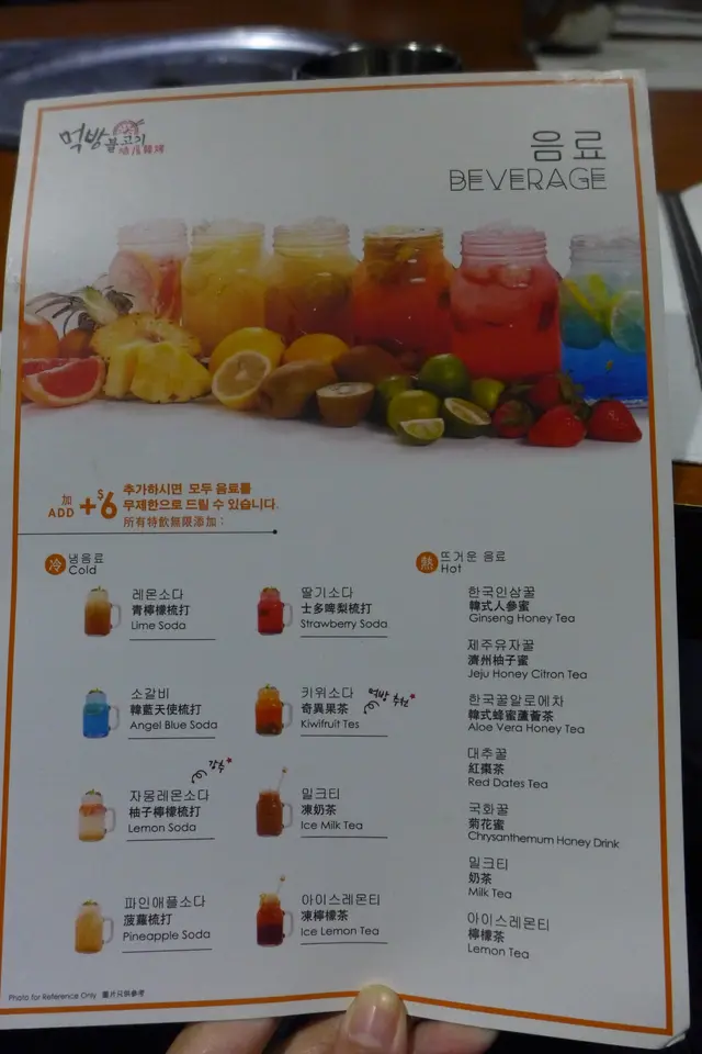 青檸檬梳打則呈半透明,只隱約見到兩片青檸。入口是很清新的青檸味,甜度也適中,吃過味道濃烈的韓食,正好可清一清口腔的味道。
